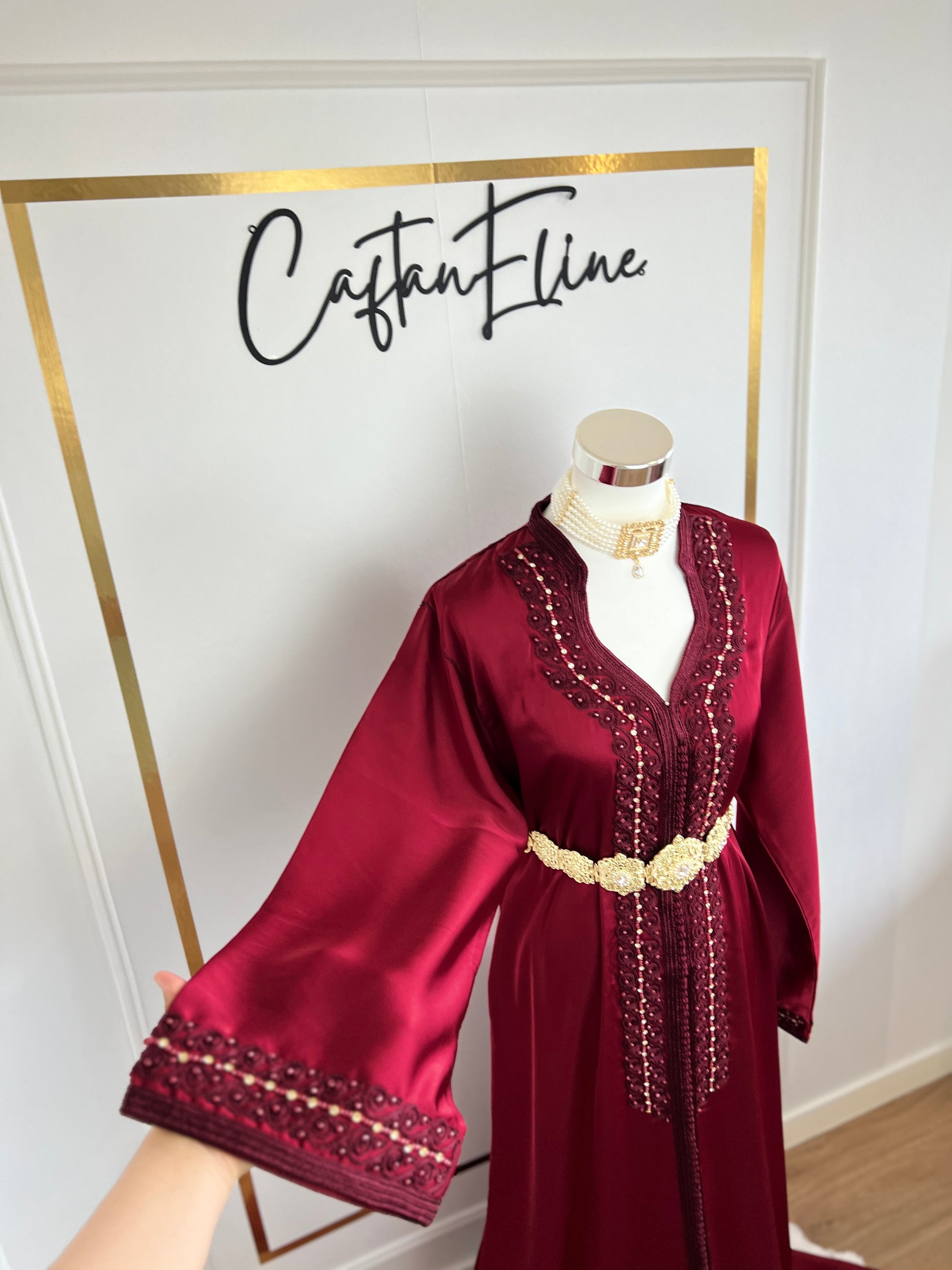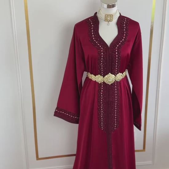 this caftan combines the charm of Moroccan craftsmanship with a contemporary touch,