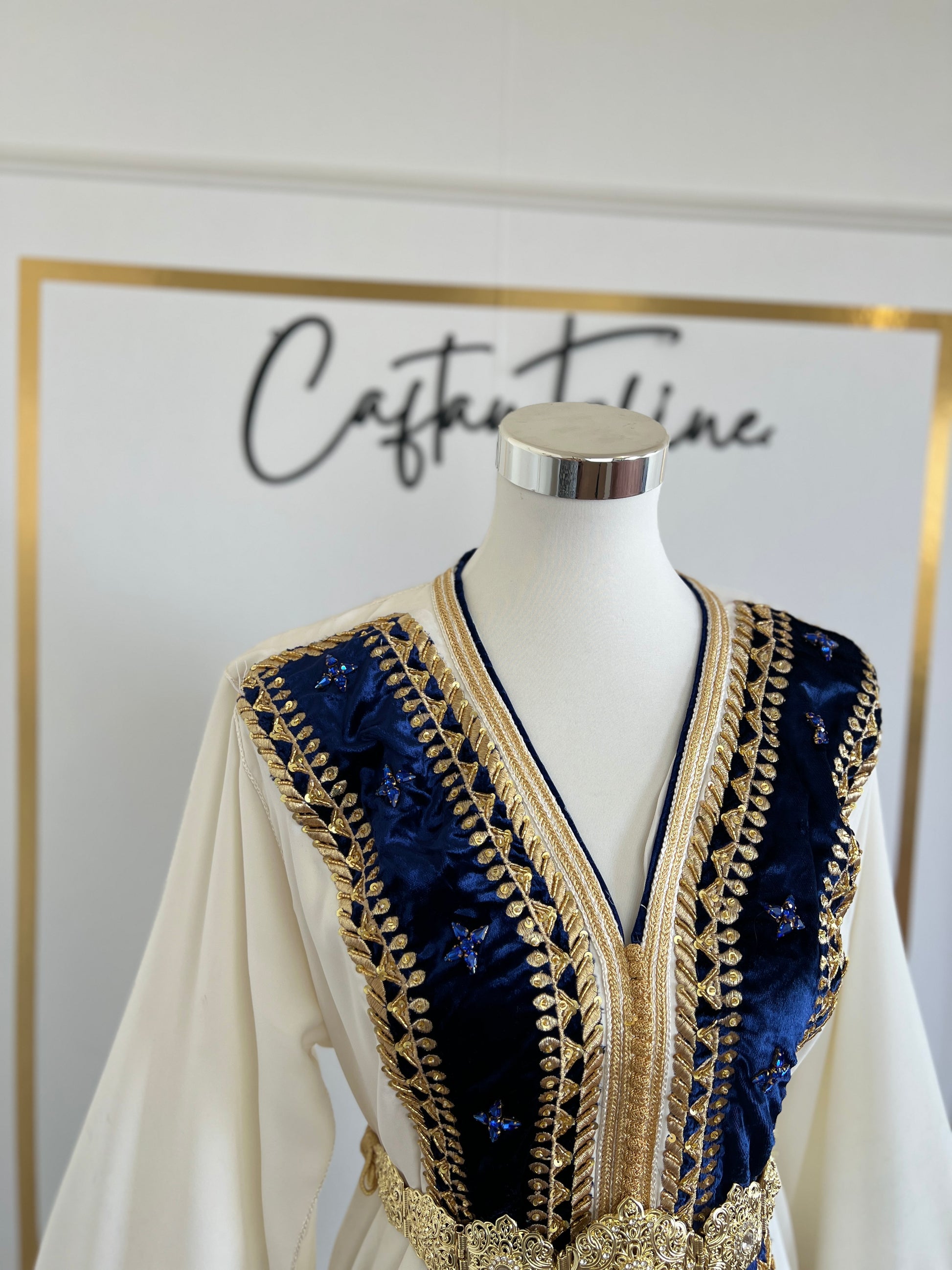 this caftan combines the charm of Moroccan craftsmanship with a contemporary touch,