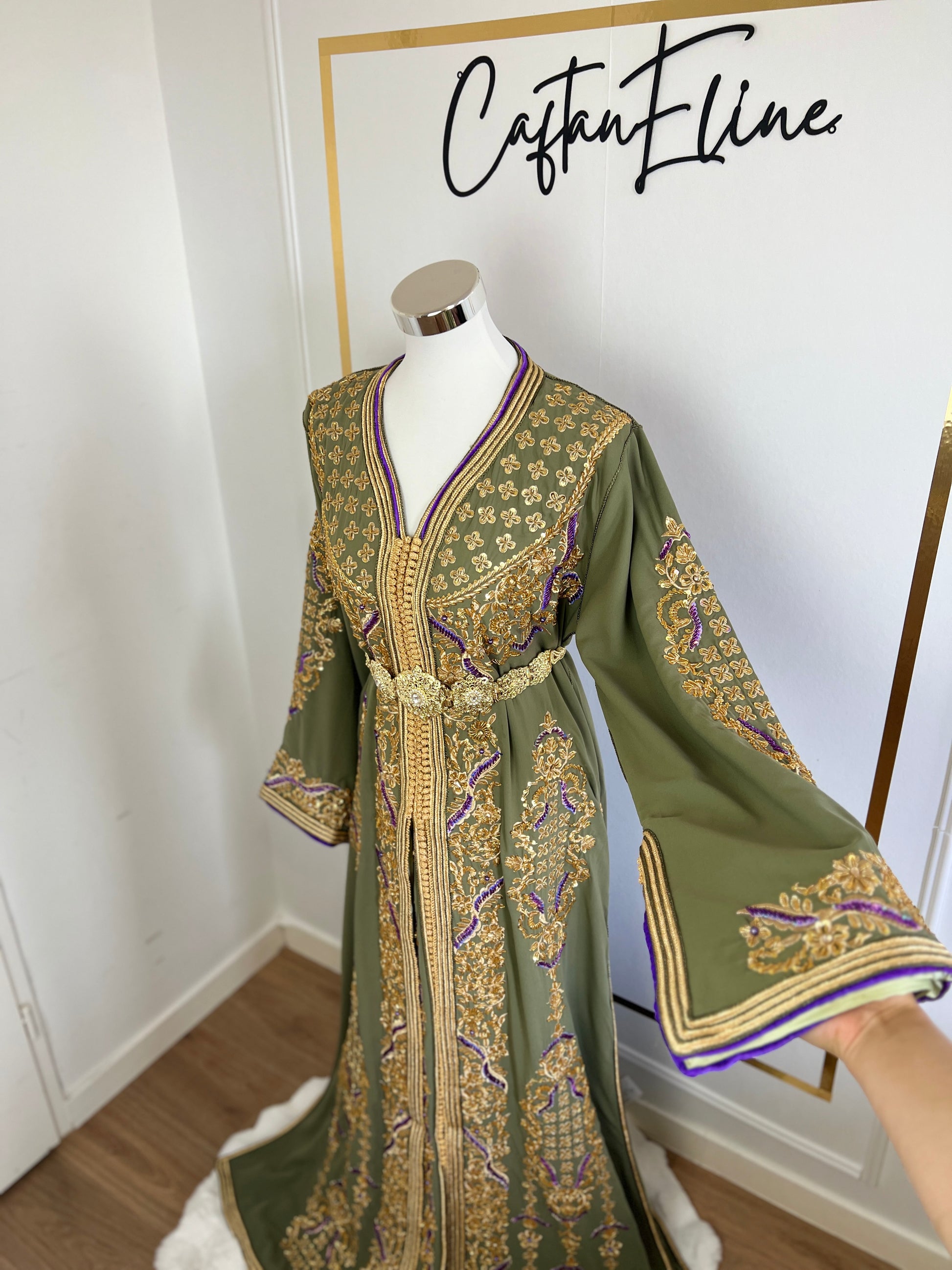this caftan combines the charm of Moroccan craftsmanship with a contemporary touch,