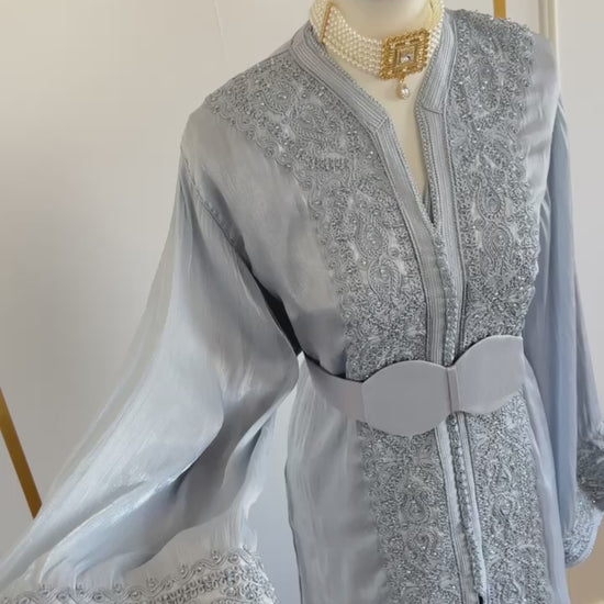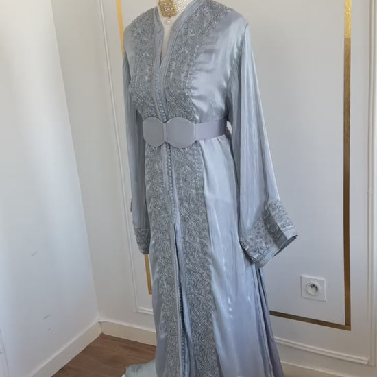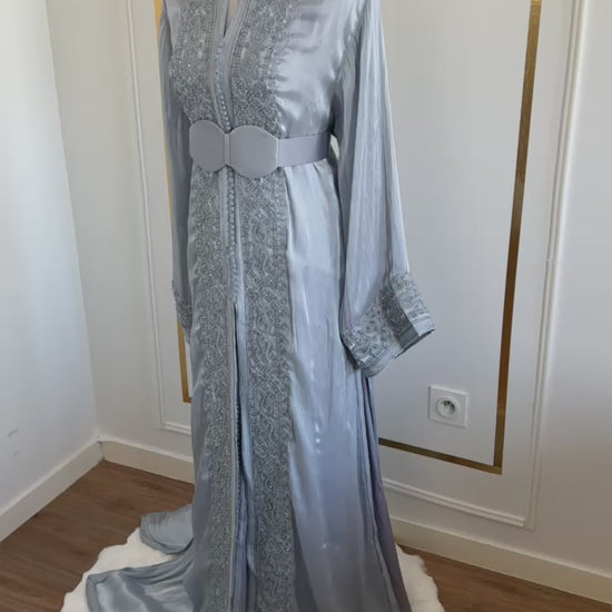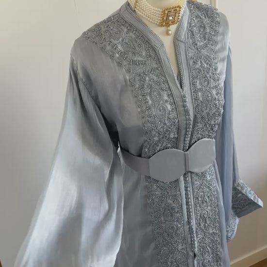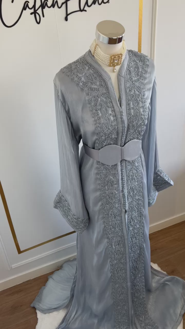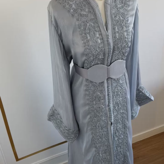 this caftan combines the charm of Moroccan craftsmanship with a contemporary touch,