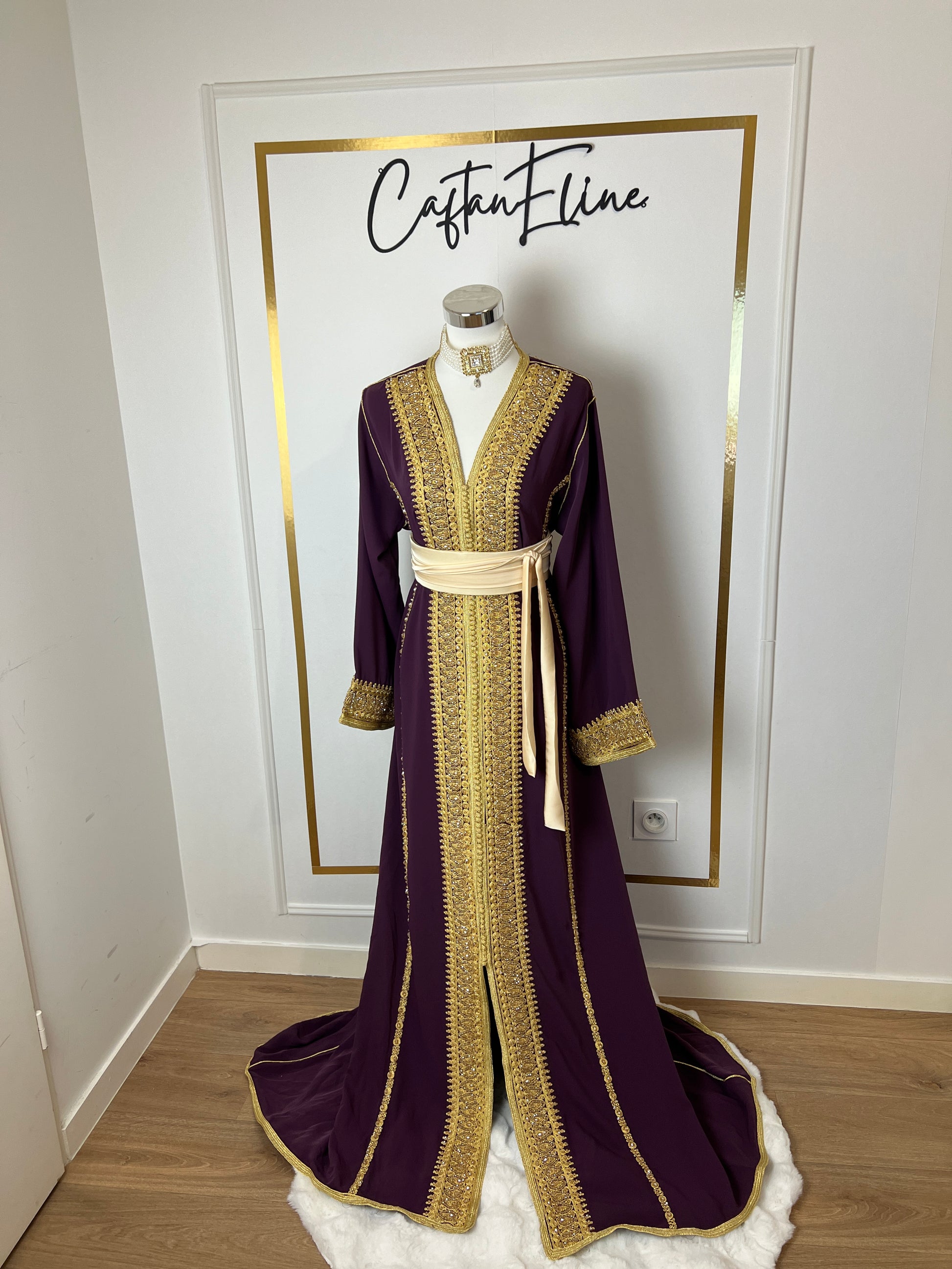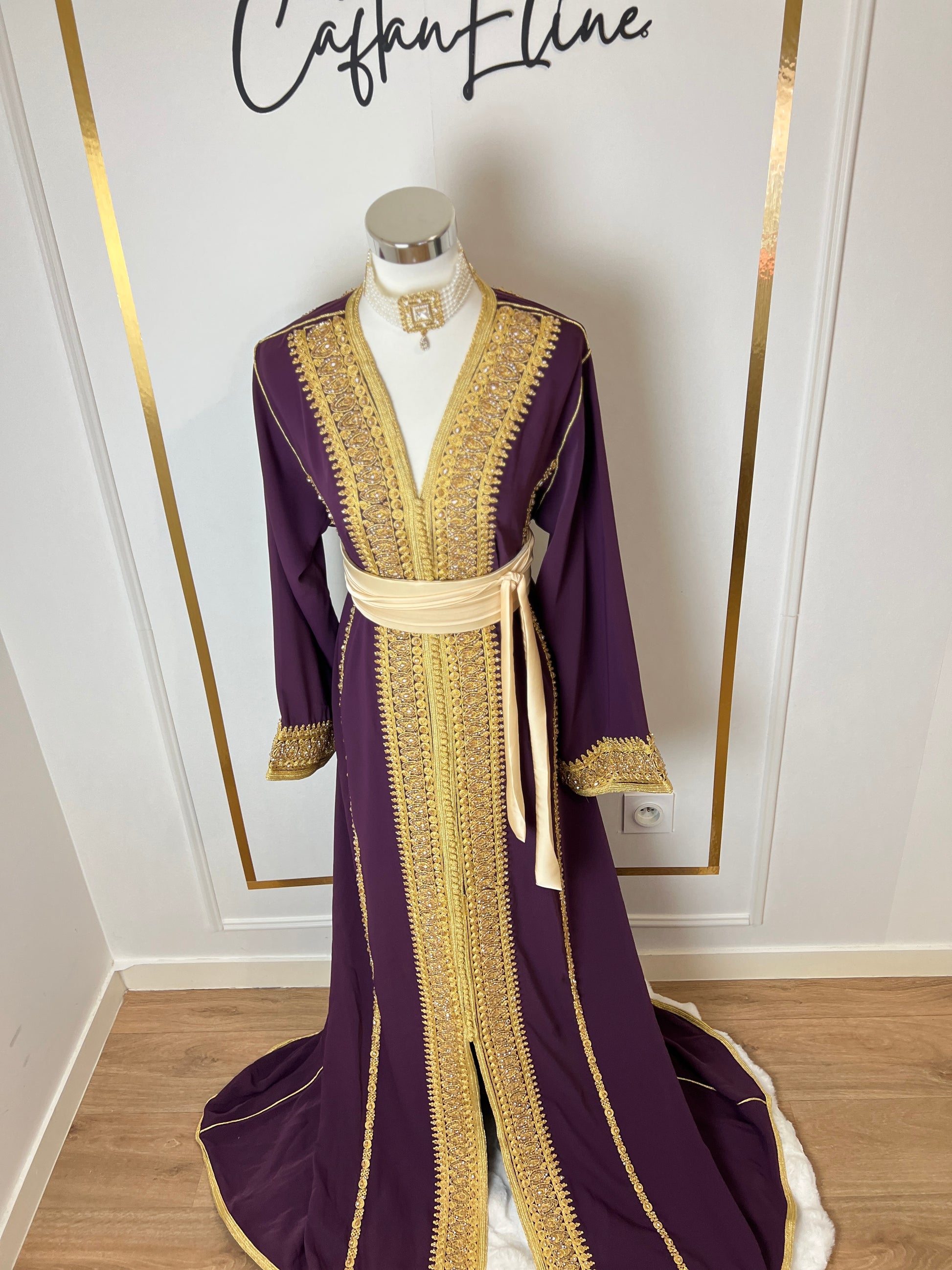 this caftan combines the charm of Moroccan craftsmanship with a contemporary touch,