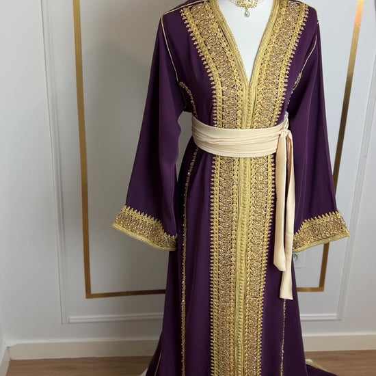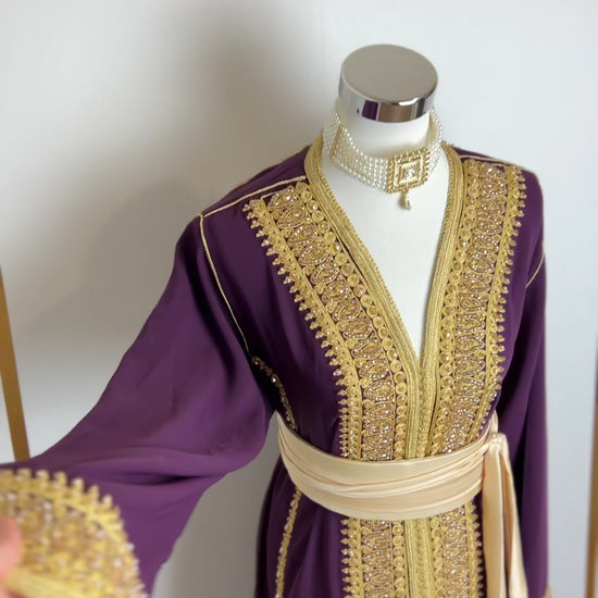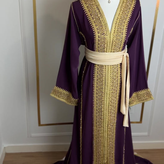 this caftan combines the charm of Moroccan craftsmanship with a contemporary touch,