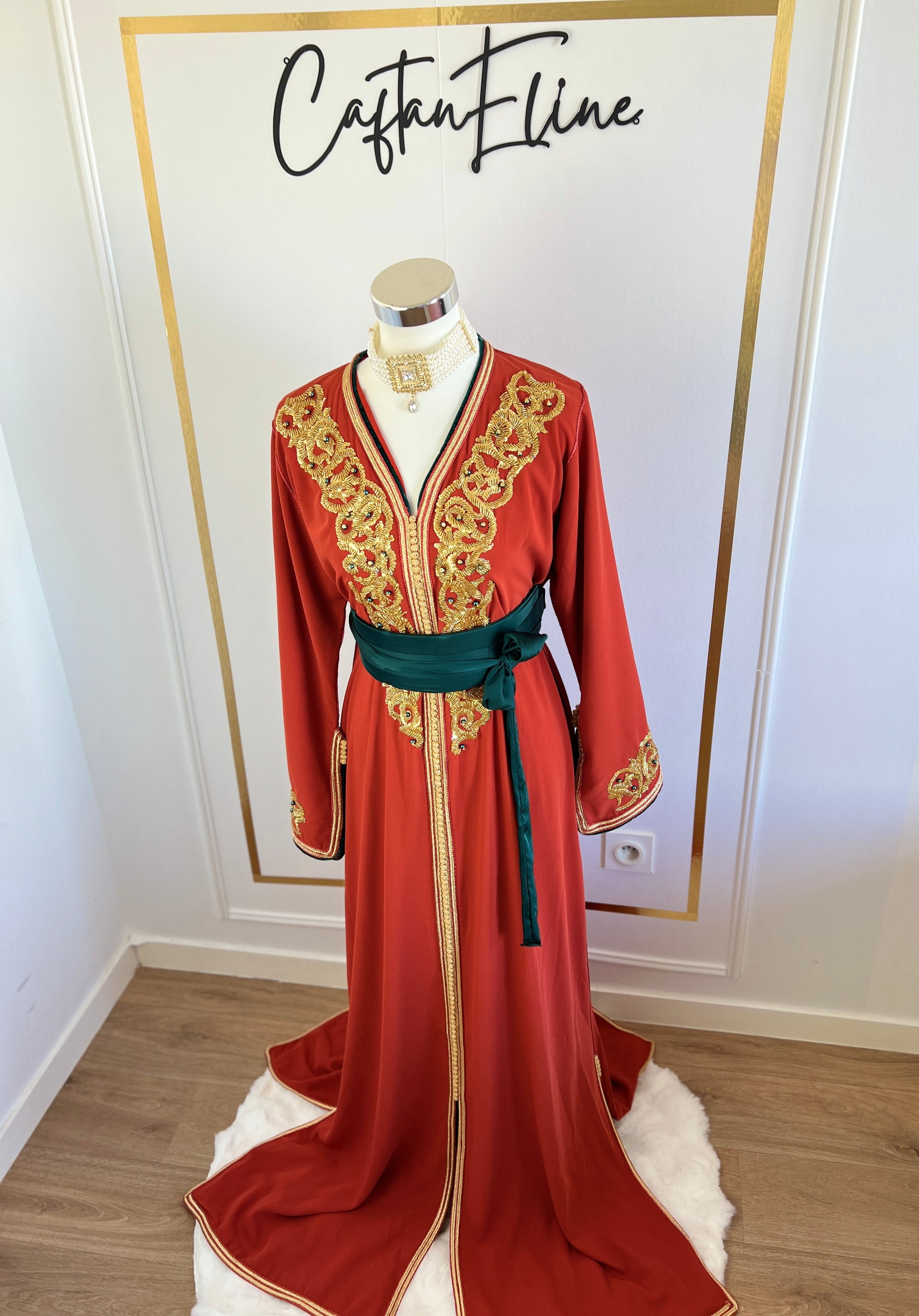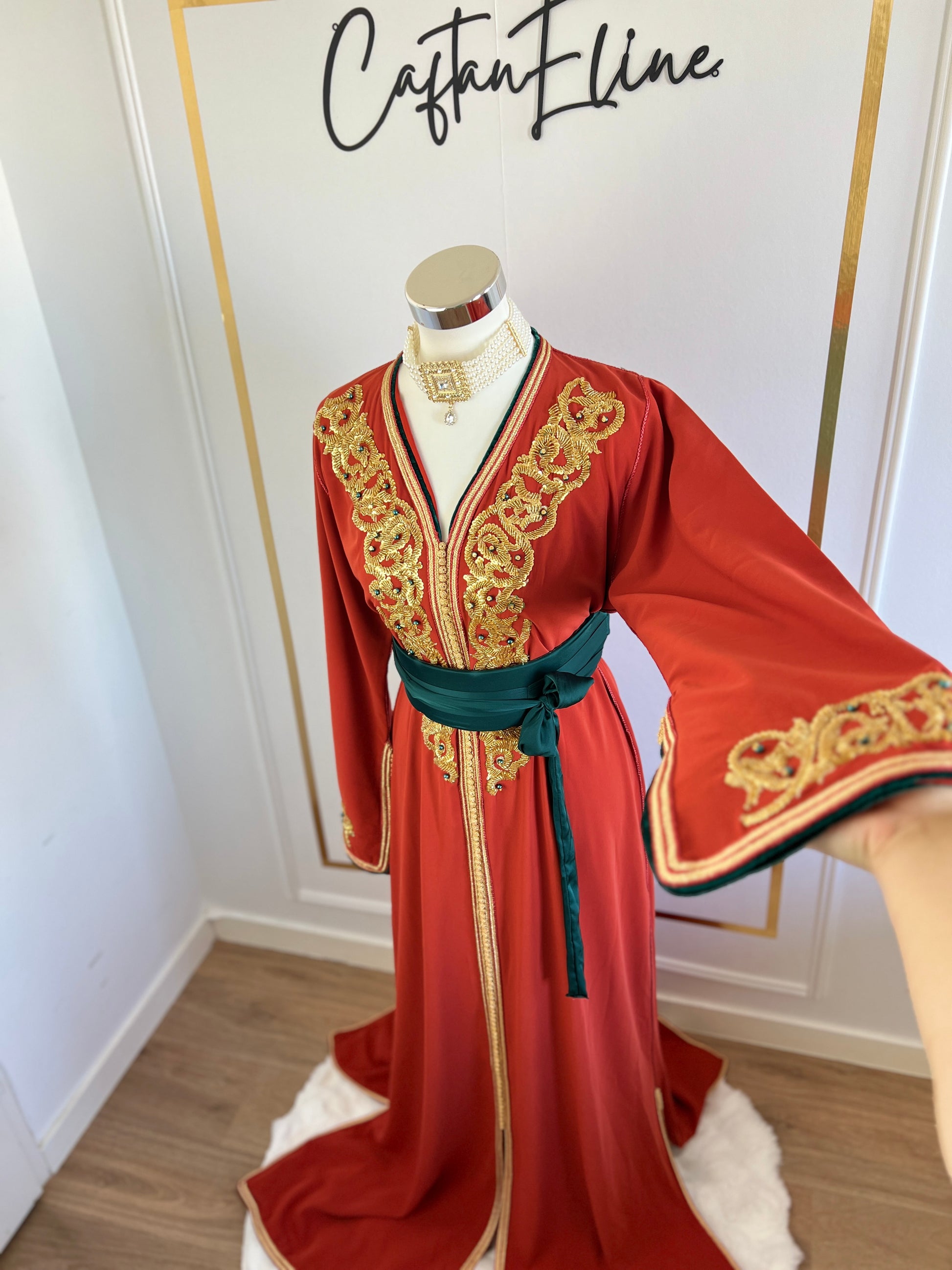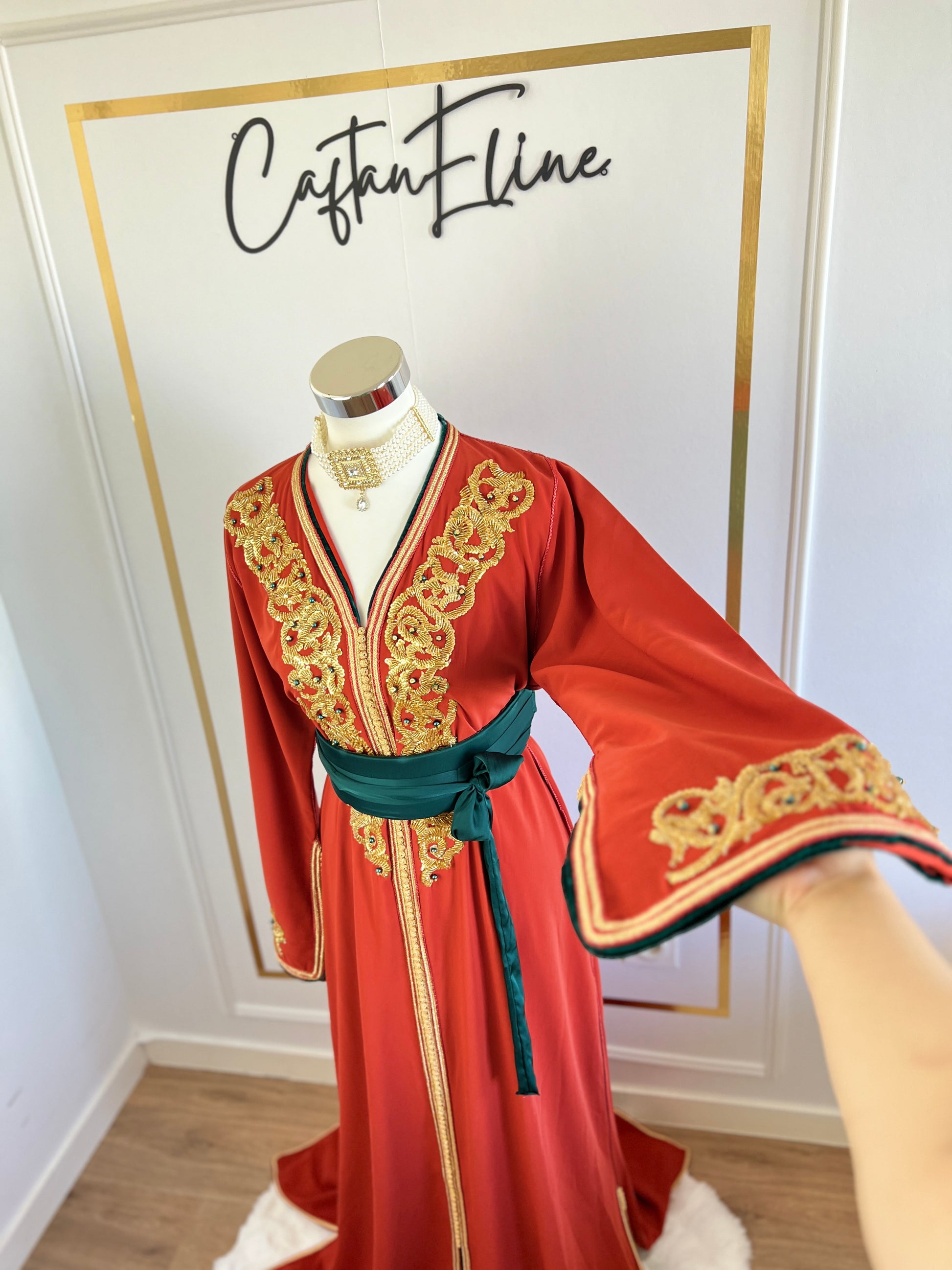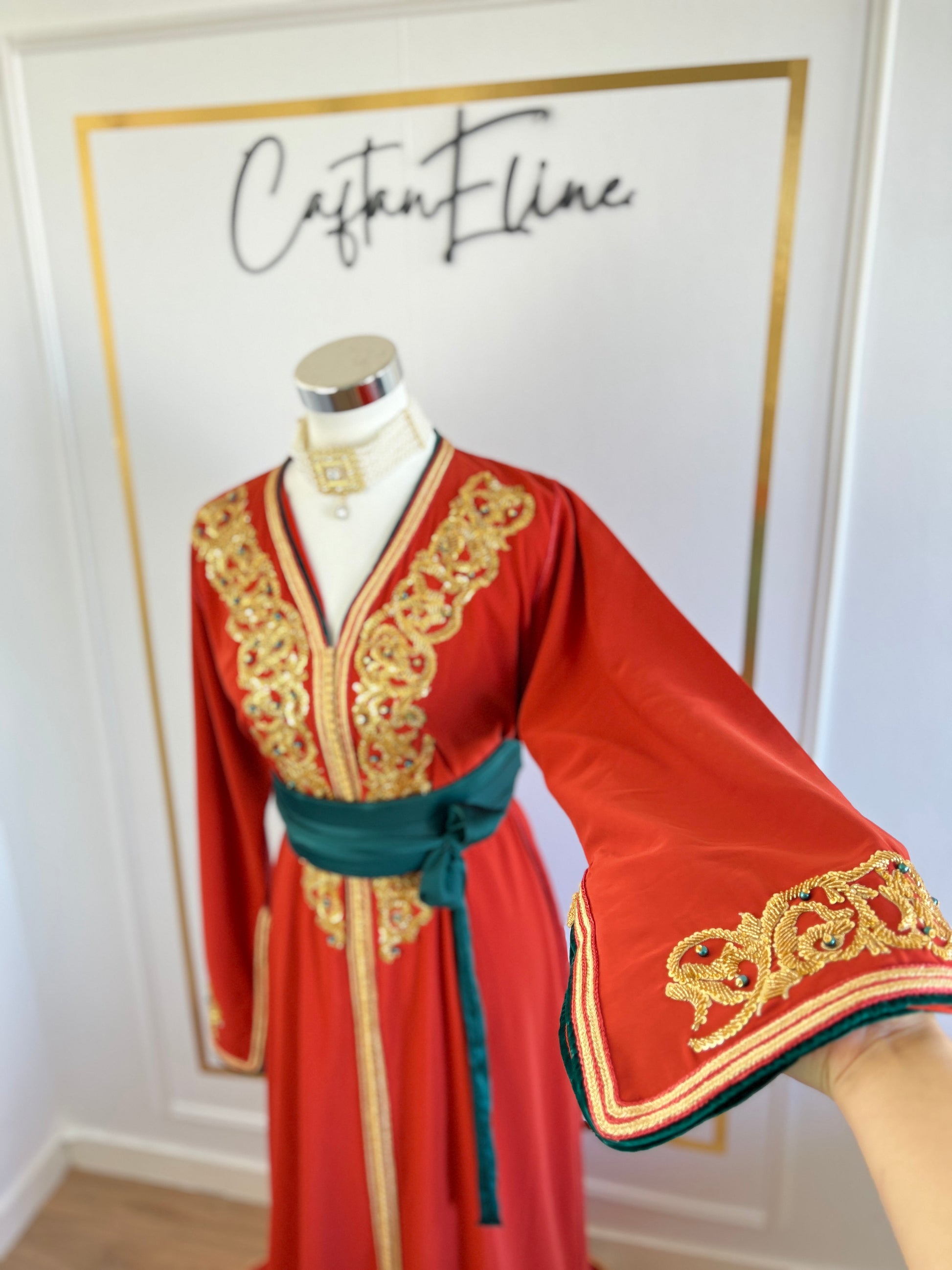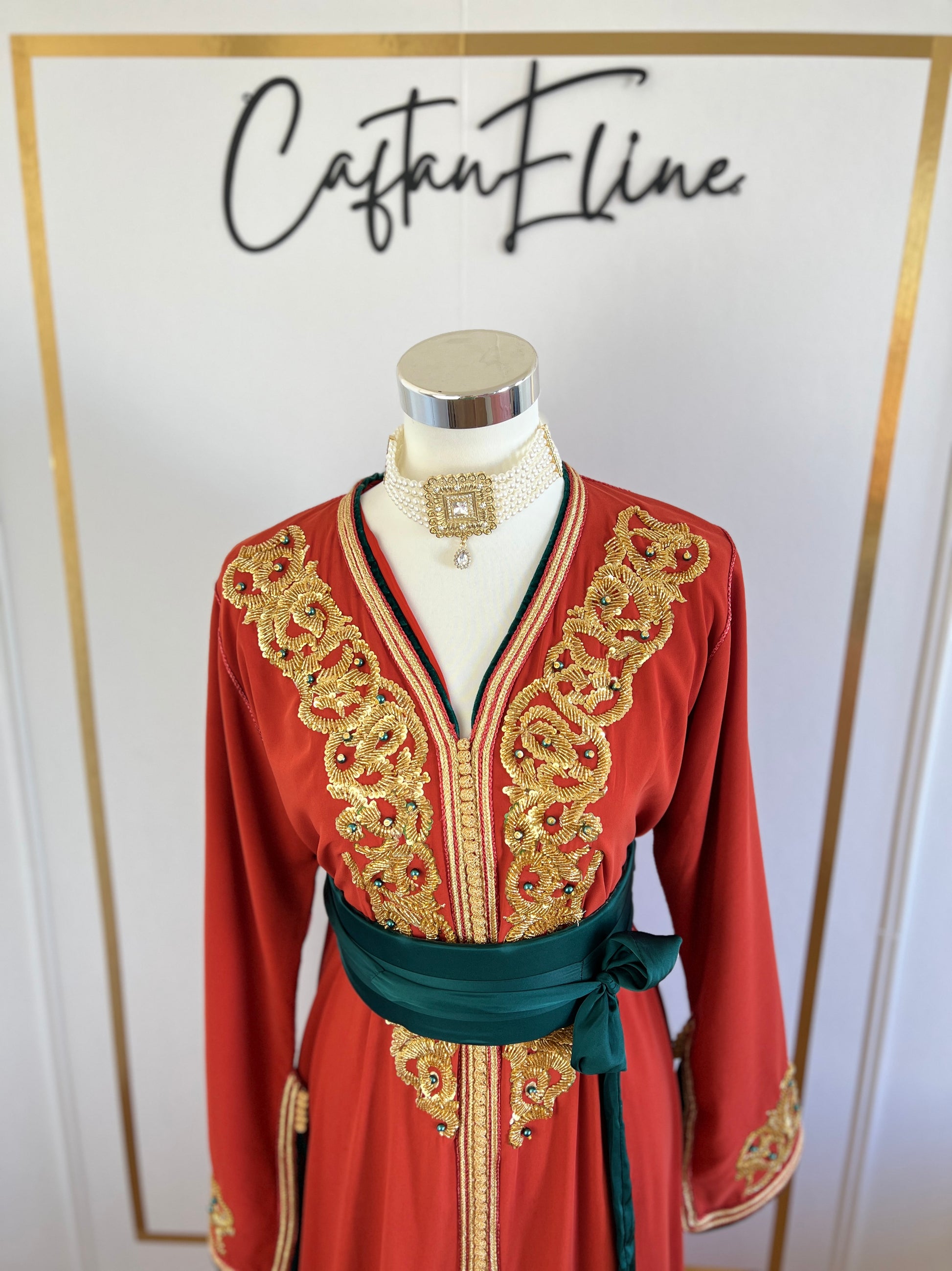 this caftan combines the charm of Moroccan craftsmanship with a contemporary touch,