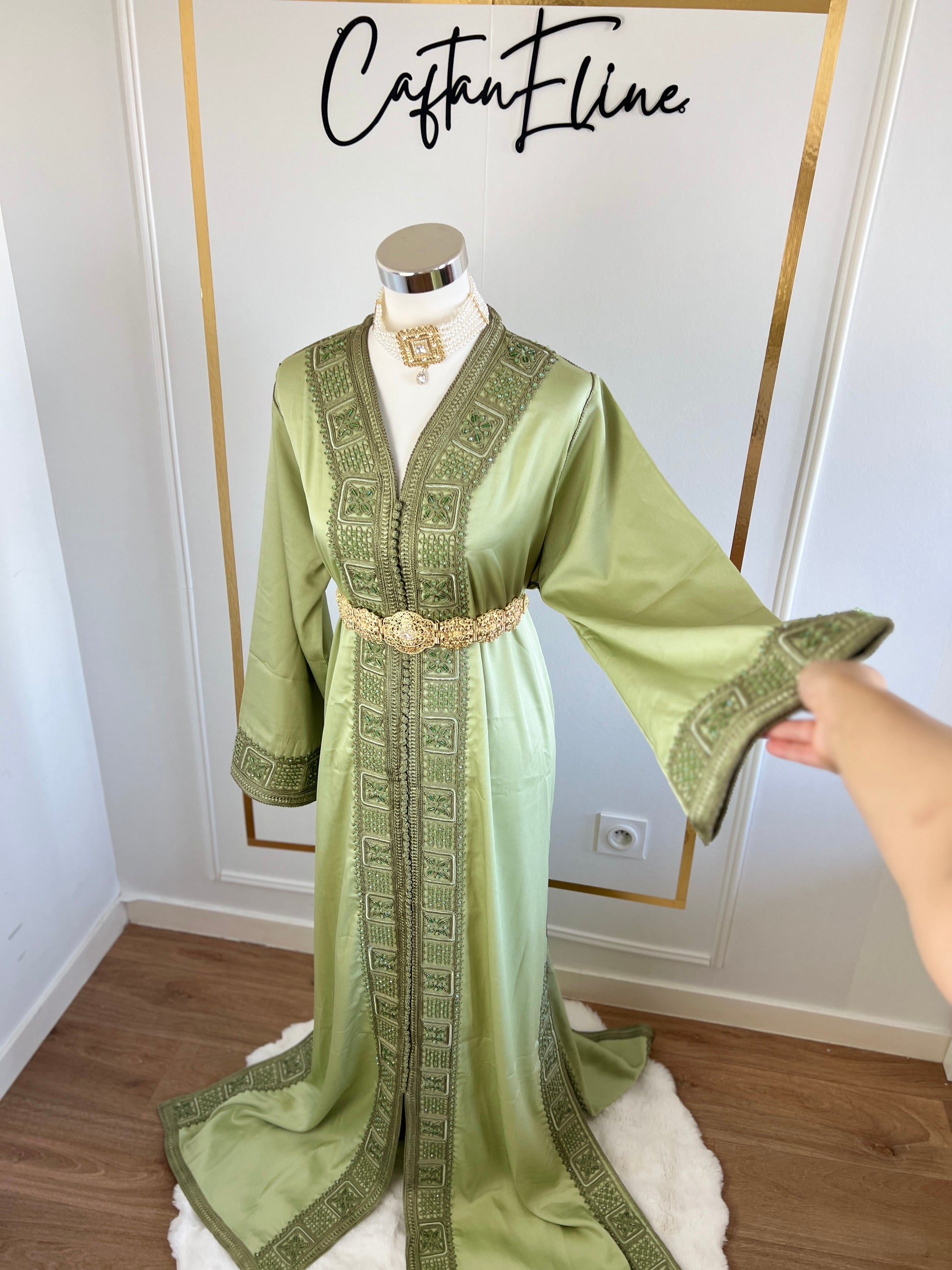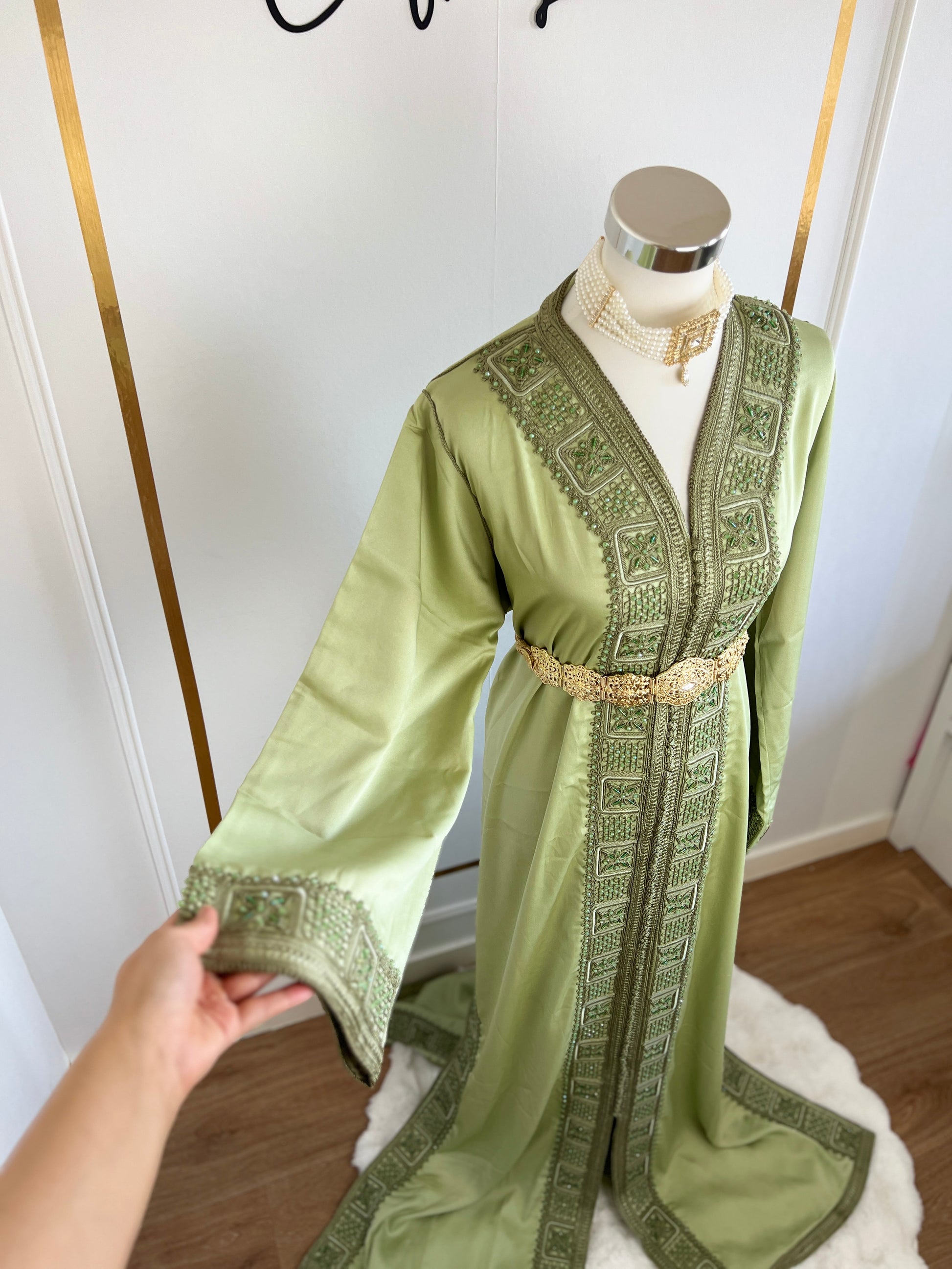 this caftan combines the charm of Moroccan craftsmanship with a contemporary touch,